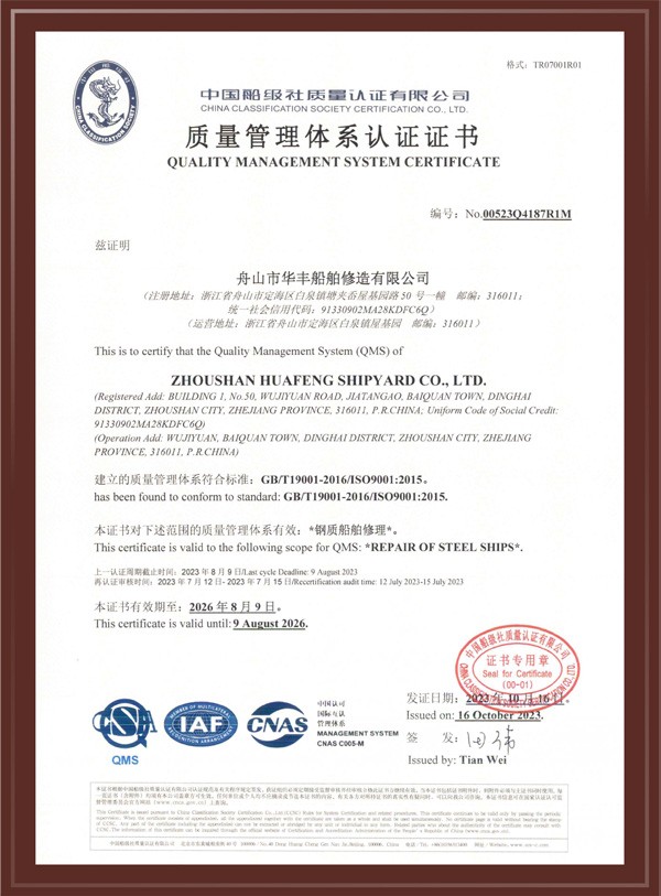 版權(quán)所有 ? 2023 舟山市華豐船舶修造有限公司