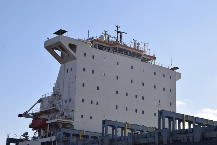 該輪11月12日靠泊我司長涂基地,主要工程是混合式脫硫改裝項目,即將原有煙囪排氣系統(tǒng)根據(jù)最新環(huán)保排放標準新裝煙氣洗滌脫硫塔以及塔房結構、混合式脫硫泵及管路系統(tǒng)、氫氧化鎂堿液儲存及加注系統(tǒng)、廢水處理系統(tǒng)以及脫硫監(jiān)控、檢測設備及系統(tǒng)和電氣系統(tǒng),另有阿伐拉伐壓載水系統(tǒng)改裝、岸電系統(tǒng)改裝、駕駛臺設備升級、艙蓋修理等其他特檢工程。