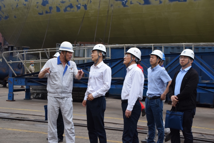 在隨后的座談交流中,鄔董事長向陸秘書長等重點介紹了公司的發(fā)展歷程及當(dāng)前正在實施推進的重大項目,如數(shù)智化船廠的布局,以及為綠色低碳修船正在自主研發(fā)的設(shè)備設(shè)施等,同時,也談及企業(yè)發(fā)展中遇到的瓶頸問題希望得到相關(guān)的政策支持。
