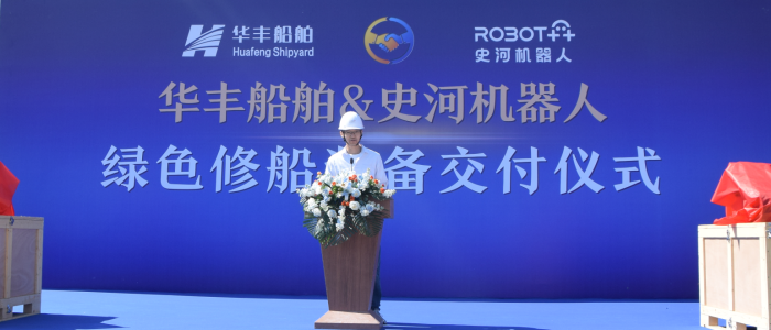 發(fā)布時(shí)間:2024-08-03 點(diǎn)擊量:16562024年8月3日上午,舟山華豐船舶與史河機(jī)器人公司綠色修船裝備交接儀式順利完成。史河機(jī)器人創(chuàng)始人&CEO許華旸、COO蒲瀟、工程部總經(jīng)理劉彥,華豐船舶董事長兼總經(jīng)理鄔志祥、副總經(jīng)理舒開鋒等出席儀式,儀式由總經(jīng)理助理周武佩主持。